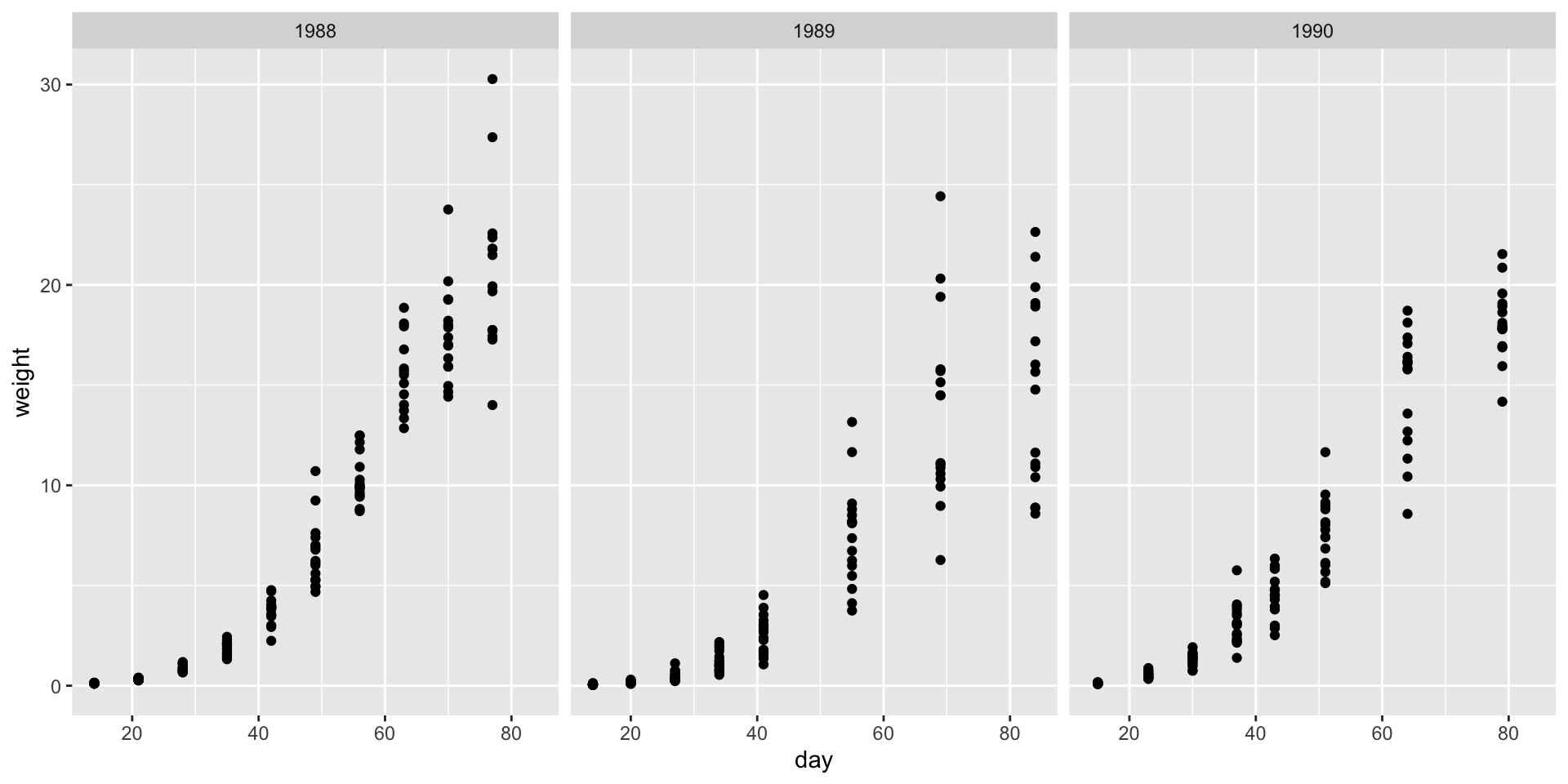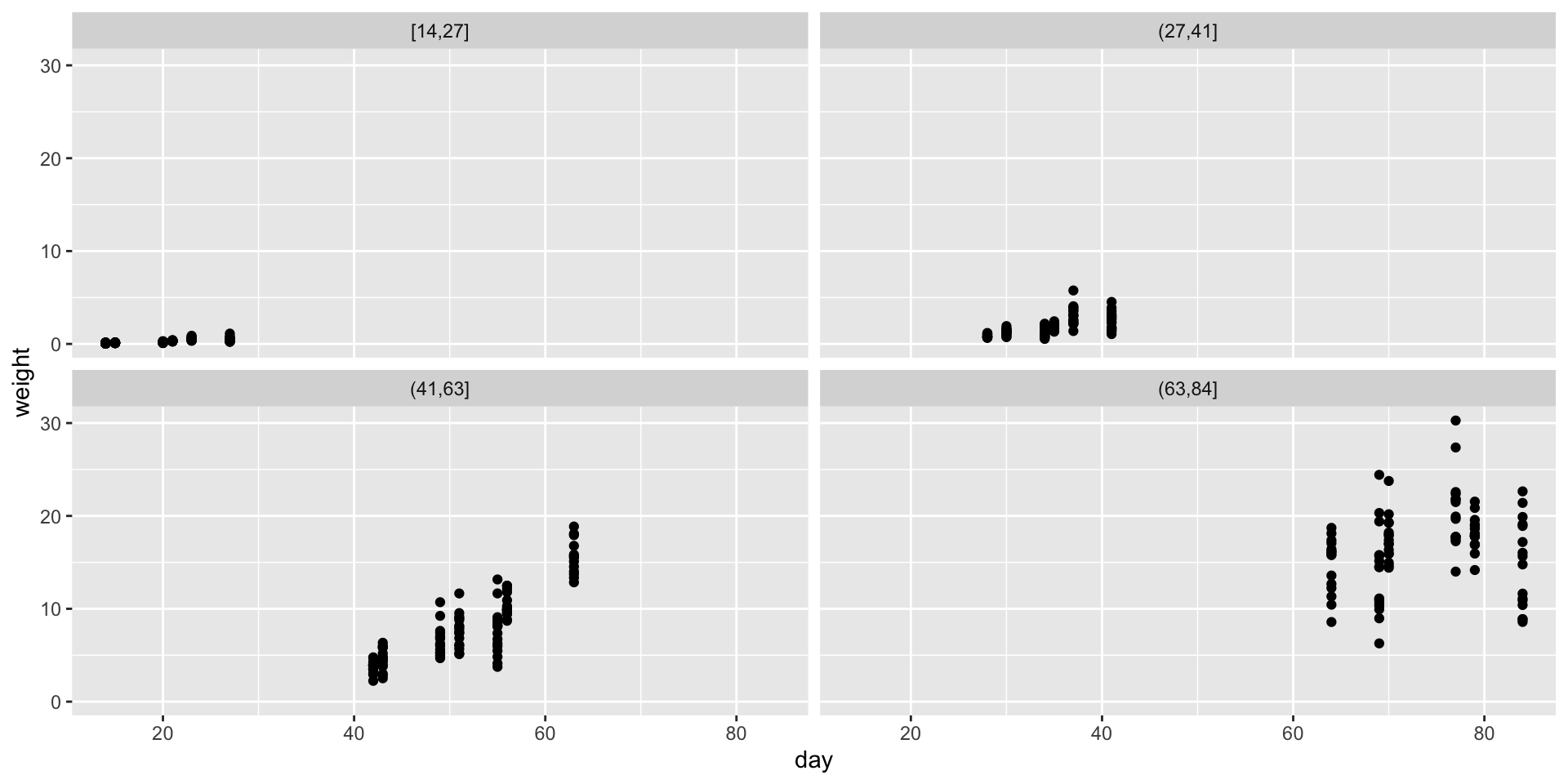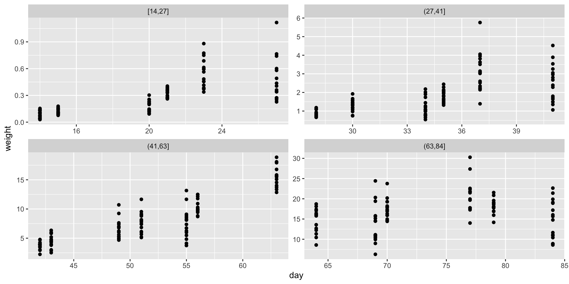 $ weight : num 0.106 0.261 0.666 2.11 3.56 ...