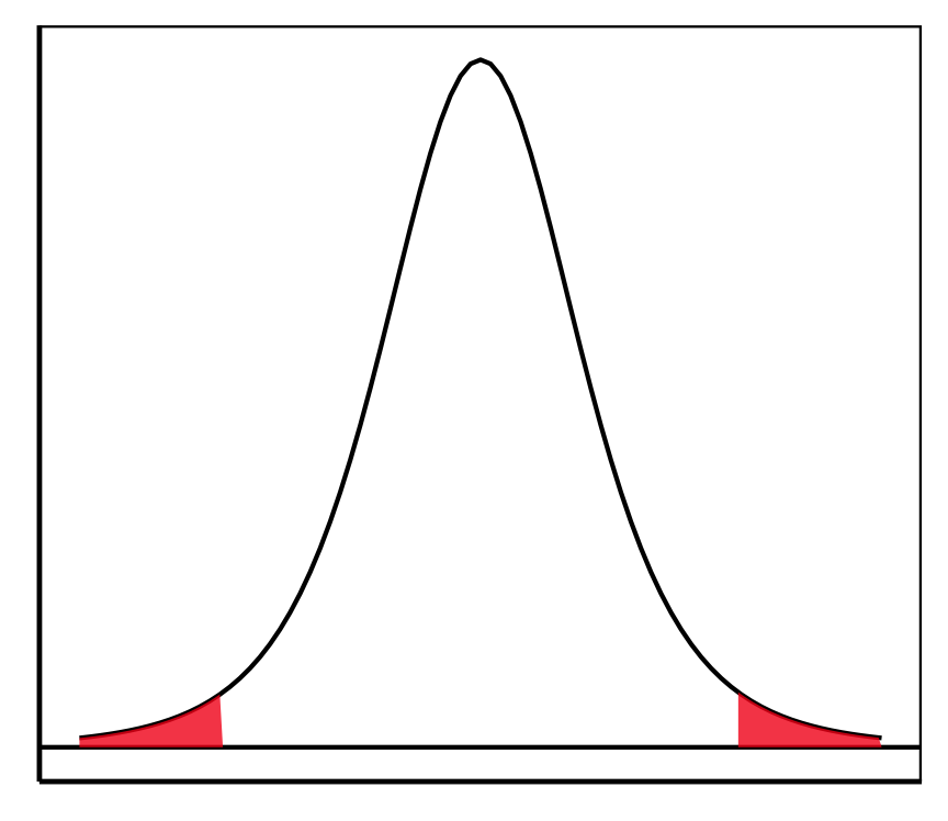 Sampling distribution for a t-statistic. Values expected assuming \(H_o\) is true. Shaded areas indicate extreme values.