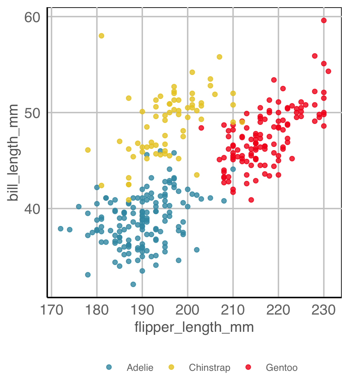 This means we would reject \(H_o\) and conclude that there is a difference in the distribution of bill length and flipper length between the species of penguins.